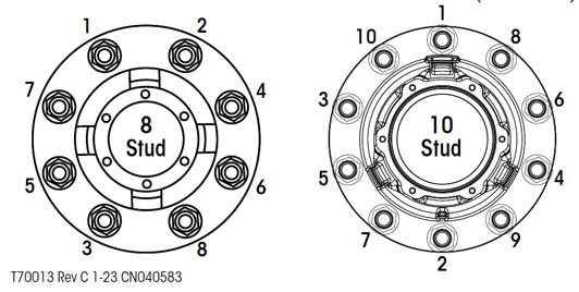 9. Repeating sequence, retighten all wheel nuts to a final torque of 475±25 ft. lbs. (645±30 Nm).